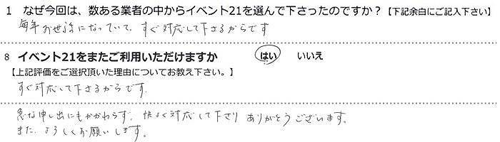 また来年、利用させていただきます。よろしくお願い致します。(東京都)