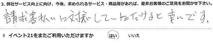 見積り書やメール等のご返信や対応がじんそくで助かりました。