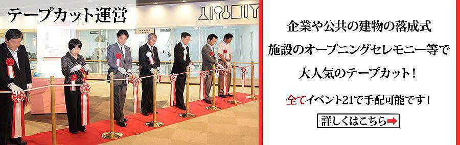 テープカットとは、建物が完成したときに行われる落成式、施設のオープニングセレモニー、高速道路等が完成した際の開通式などで行われる催しです。 張り渡した紅白テープをハサミでカットし、お祝いをするイベントです。