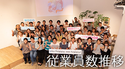 | 第19期 | 11名 | 2009年 | 10月 | webからの新規お問い合わせが増えすぎた為、今までの縁故採用では対応が追い付かなくなり、一般採用を開始する。 | |