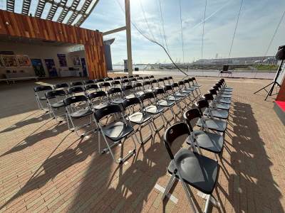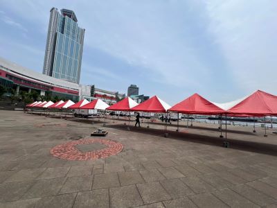 会場の手配から、レイアウト、通常より60センチも高い高脚を使用したテントなど用途に併せ、運営がよりスムーズに進行できるようにご提案させていただきました。