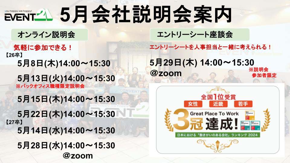 イベント21説明会参加者対象エントリーシート座談会も開催!