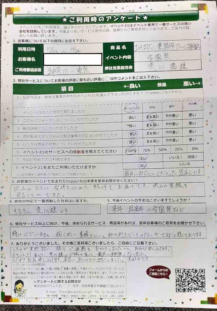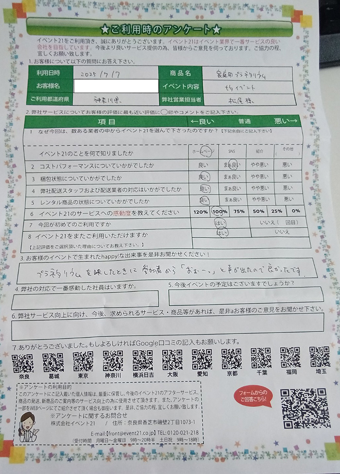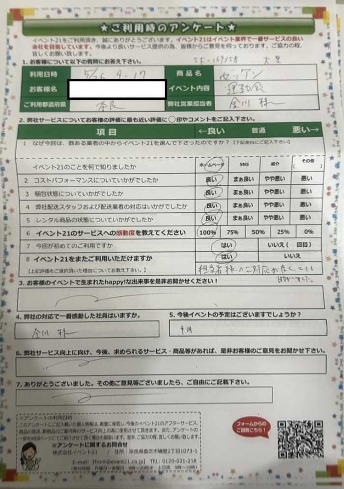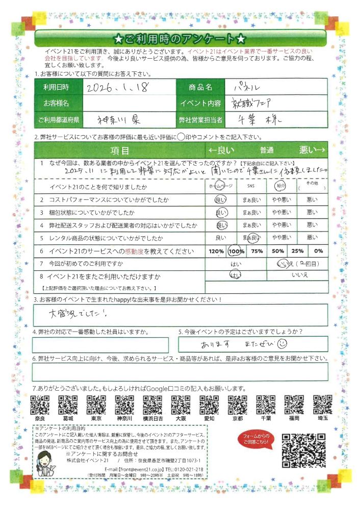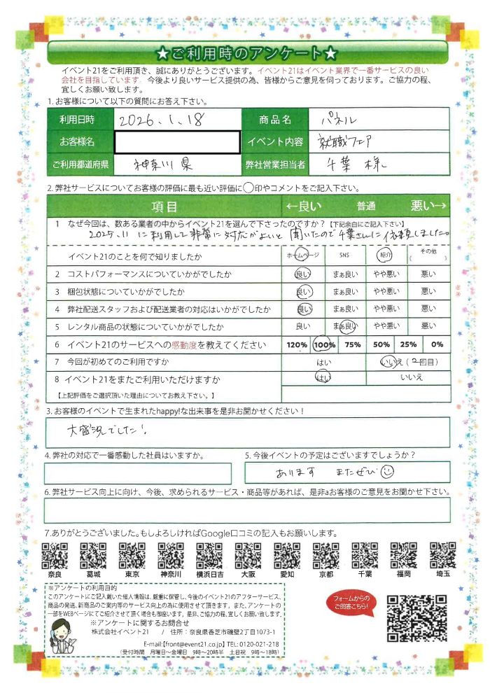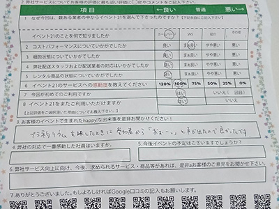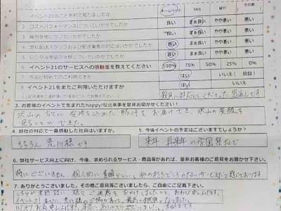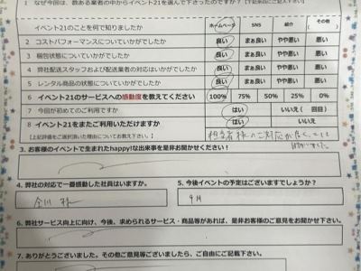 アンケート「イベント21をご利用いただきましたお客様のお声です!」