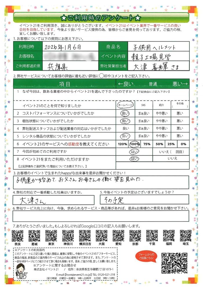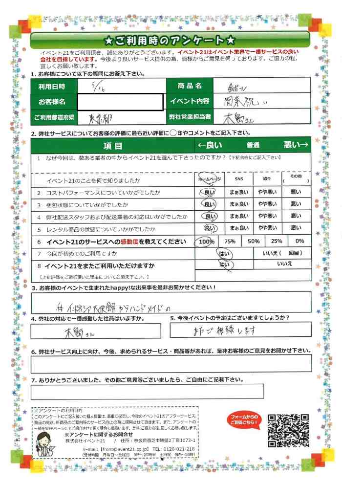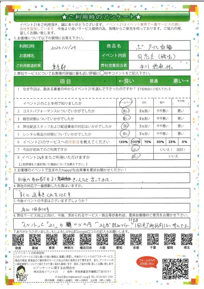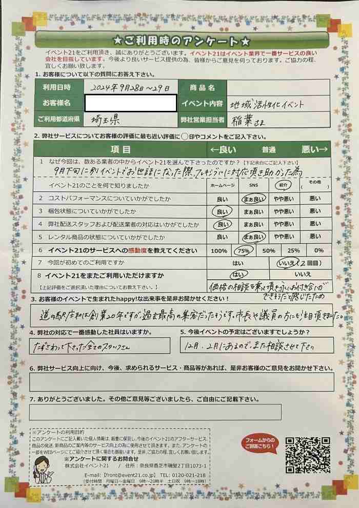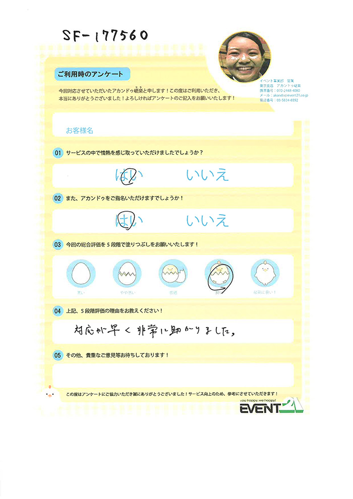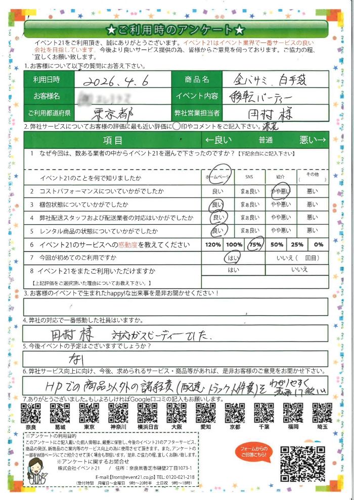 アンケート「イベント21をご利用いただきましたお客様のお声です!」