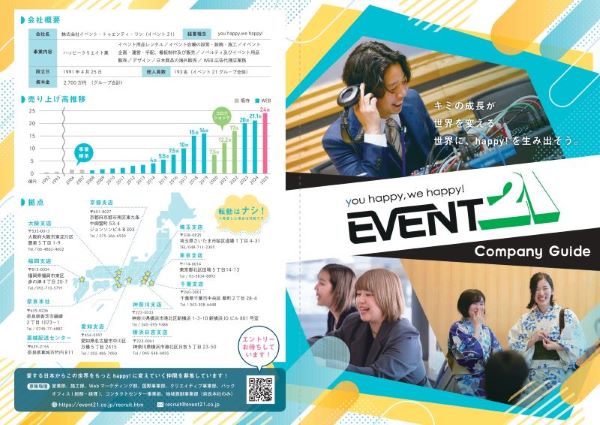 会社が大きくなればなるほど、世界がhappy!になっていける。そんなカッコ良い存在をイベント21は目指しております。これからもより一層、日々ご愛顧くださっている皆様の期待に応えるべく企業努力に励んで参ります。