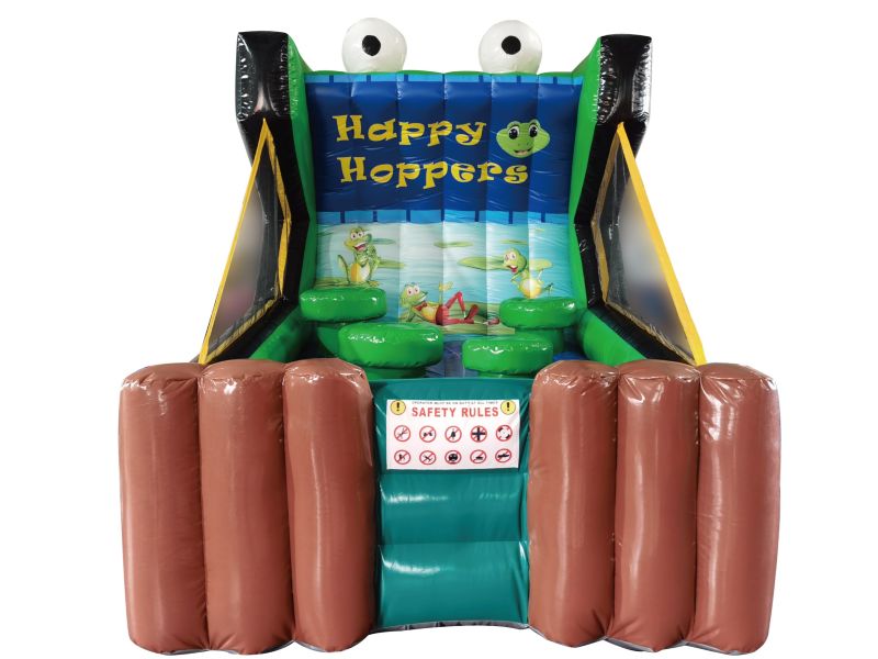カラフルで楽しい見た目が目を引く、子ども向けの人気エア遊具です。 カエルの人形を手に取り、ふわふわの的をめがけてポーンと投げて遊びます。ルールは簡単でも、うまく命中させるにはちょっとしたコツが必要。繰り返し挑戦したくなるゲーム性で、小さなお子さまから大人までつい夢中になってしまいます。 イベント会場を明るく彩り、キッズスペースや縁日ブースの賑やかしにぴったり。楽しさと笑顔が広がる、ファミリー向けイベントにおすすめのアイテムです!
