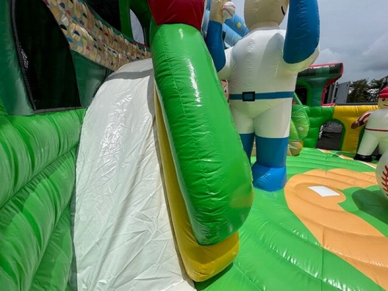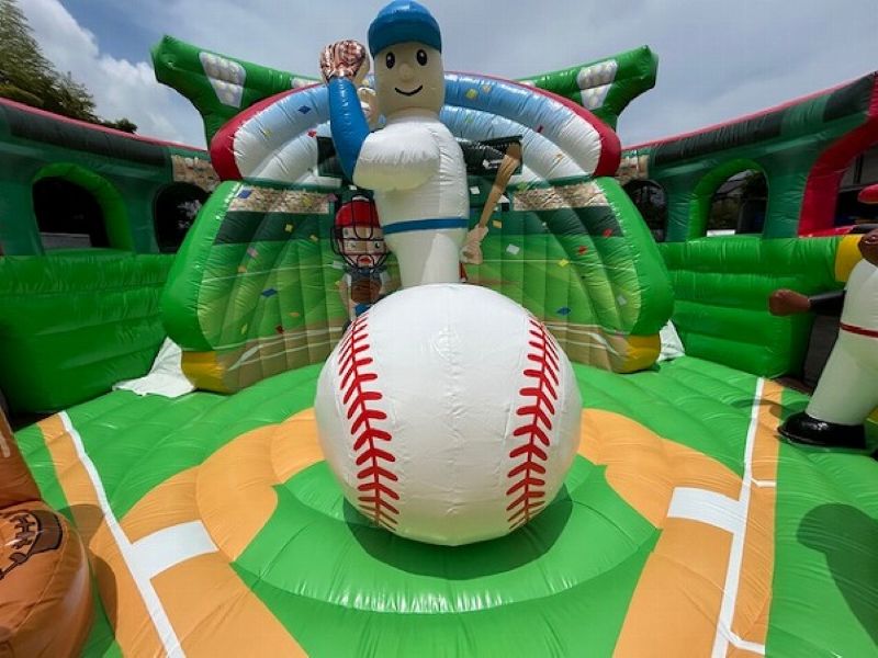 ベースボールスタジアムは、野球の世界観を体感できる大型のエアー遊具です。内部には選手やボール、グローブなどのユニークなオブジェが配置されており、子どもたちはまるで本物のスタジアムでプレーしているかのような感覚で遊ぶことができます。 特に注目すべきは、観客席を模したスライダー。登って滑るというアクティブな動きが加わることで、子どもたちの満足度は格段にアップします。カラフルでポップなデザインはイベント会場の雰囲気を一気に明るくし、集客効果も抜群です。 野球好きなお子様はもちろん、スポーツイベントや地域のお祭りなど、幅広いシーンで活躍する人気アイテムです。