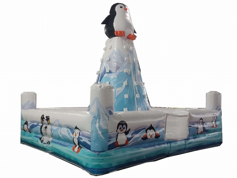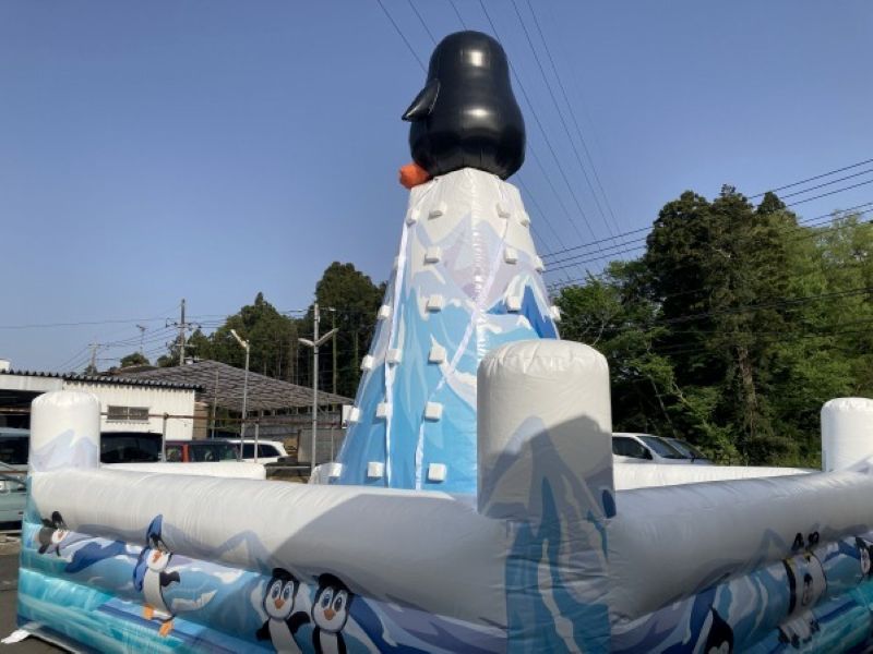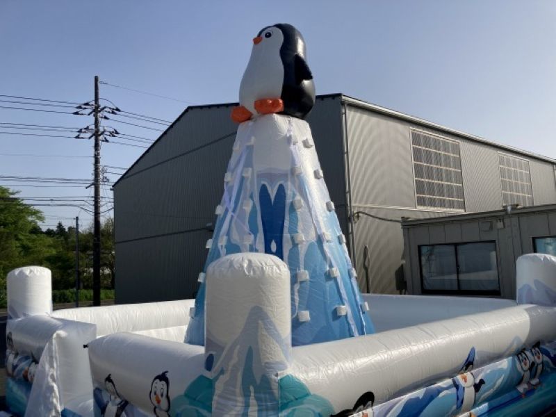 ふわふわ素材でできたペンギンボルダリングは、安全に楽しく遊べるクライミング遊具です。真ん中にそびえる氷山には手足を使って登ることができ、頂上には大きなペンギンが待っています!周囲には転倒時も安心な囲いがあり、イベントの目玉になること間違いなし。見た目のインパクトと安全性を兼ね備えたアイテムです。