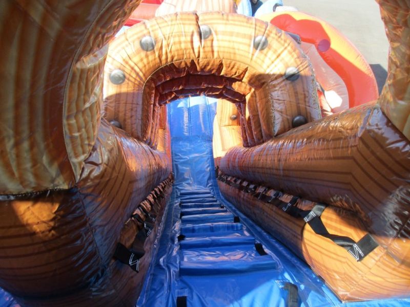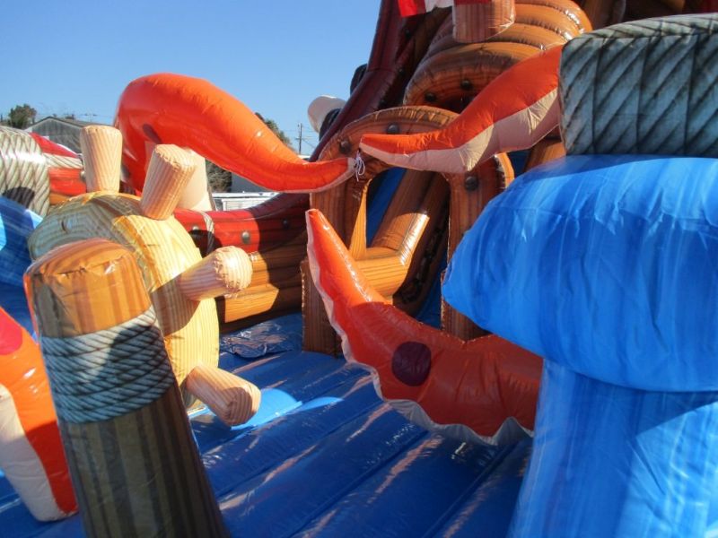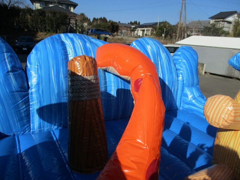 本物の海賊船のようなビジュアルが印象的な、ふわふわ滑り台タイプのエアー遊具です。11メートル超の大型サイズで、イベント会場でもひときわ目立つ存在感!スライダー部分は緩やかな傾斜になっており、小さなお子様でも安心して遊べます。滑ったあとにふわふわな着地面があるため、安全性も◎。設営から運営まで当社にお任せいただけます