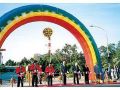 移動遊園地や野外イベント会場出入り口に設置される中型エアアーチのレンタルです。大型エアアーチを設置できるほどの道幅がない場合などにオススメです。ちなみに、弊社では竣工式にて中型エアアーチをお使い頂いたのですが、くす玉開きとテープカットも同時に行われました。道路や橋の貫通式、ウォーキングイベントなどでもお使いいただけます。ブロアーの空気の力でバルーンに送風し、立ち上がる様は見ていていつも感激してしまいます。