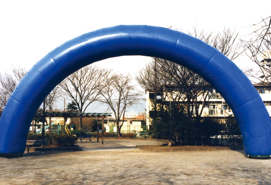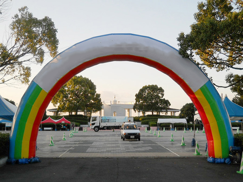 イベント会場の入り口としてエアアーチを設置いたしました。この会場は普段、公園なので目立つ目印がないのですが、イベント会場としての目印やインパクトとしてエアアーチを設置するだけで抜群に栄えます。 弊社で施工する際は風等に対して適切な養生を行います。また、電源がない会場で使用する際も発電機等もご用意いたしますので是非ご相談ください