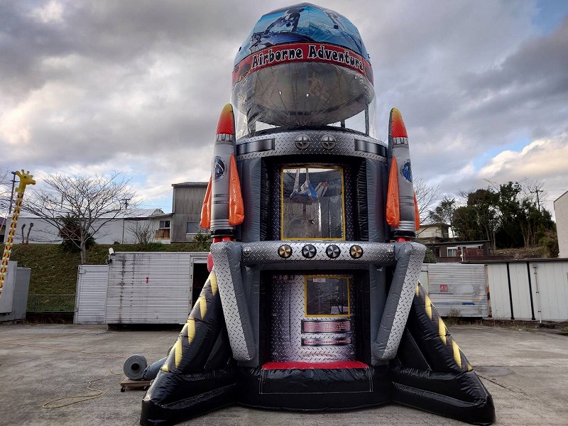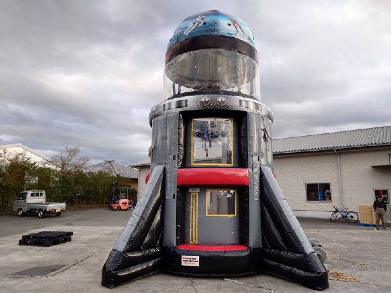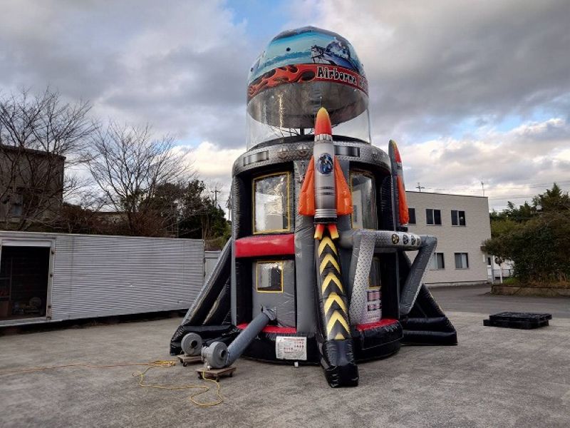「スペースエアアドベンチャー」は、宇宙ロケットをイメージした大迫力のエア遊具。専用の椅子に座って空気の力でふわりと浮かび上がる仕組みで、まるで宇宙旅行に出かけるかのような非日常体験を味わえます。体験時間は約3〜5分。小さなお子様でも安心して楽しめる安全設計で、宇宙イベント・子どもフェス・大型商業施設での催しに大人気のコンテンツです。