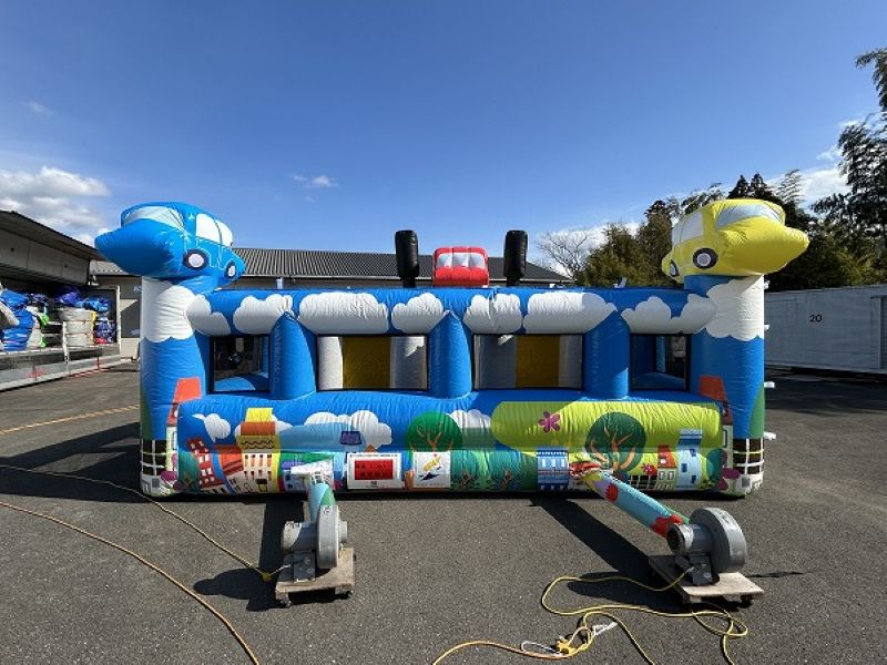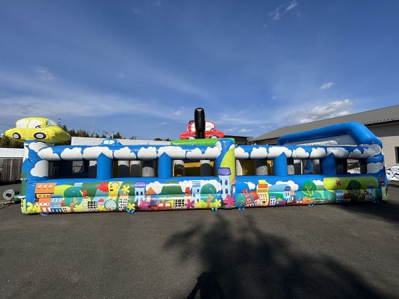 色とりどりの車や街並みがデザインされたエアー式の自動車迷路です。ふわふわの空間の中を子どもたちが自由に動き回り、迷路をクリアしていくワクワク感たっぷりのアイテム。 イベント会場やショッピングモール、地域のお祭りなど、子ども向けコーナーの目玉コンテンツとして大活躍します。 エアー遊具ならではの柔らかい素材で安全性も高く、小さなお子さまも安心して楽しめます。見た目のインパクトも抜群で、会場の集客効果にもおすすめの商品です!
