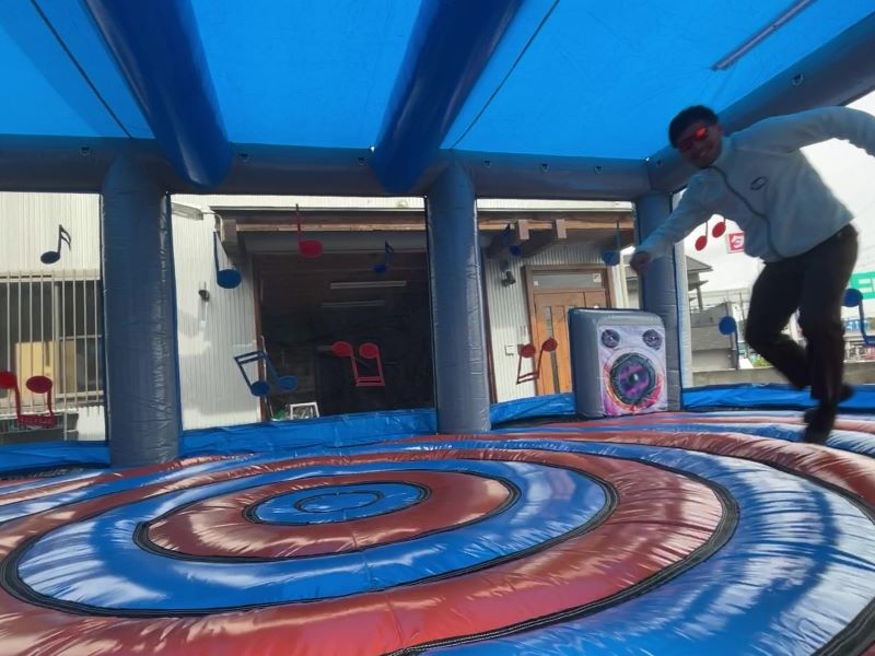 ラジカセふわふわは、フェスティバル、学園祭、地域のイベントなど、多くの人が集まる場所で特に人気があります。まるで巨大なステレオのような外観のエア遊具で、内部が広々としており、子供たちはもちろん大人も楽しめる設計になっています。飛んだり跳ねたりするだけでなく、ダンスやアクティブな遊びも自由自在。イベントやパーティーでの目玉として、訪れた人々に忘れられない楽しい時間を提供します。