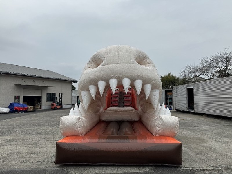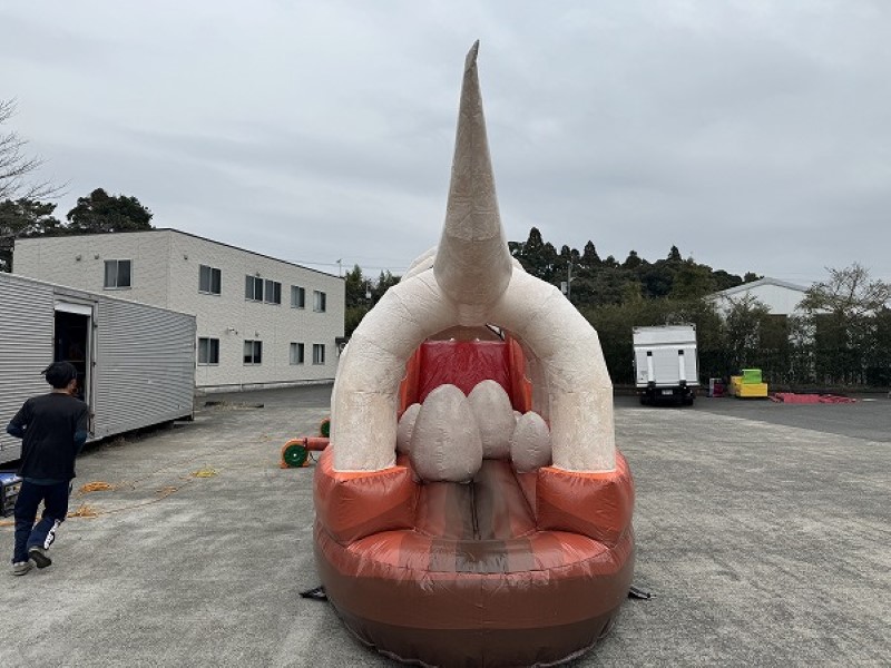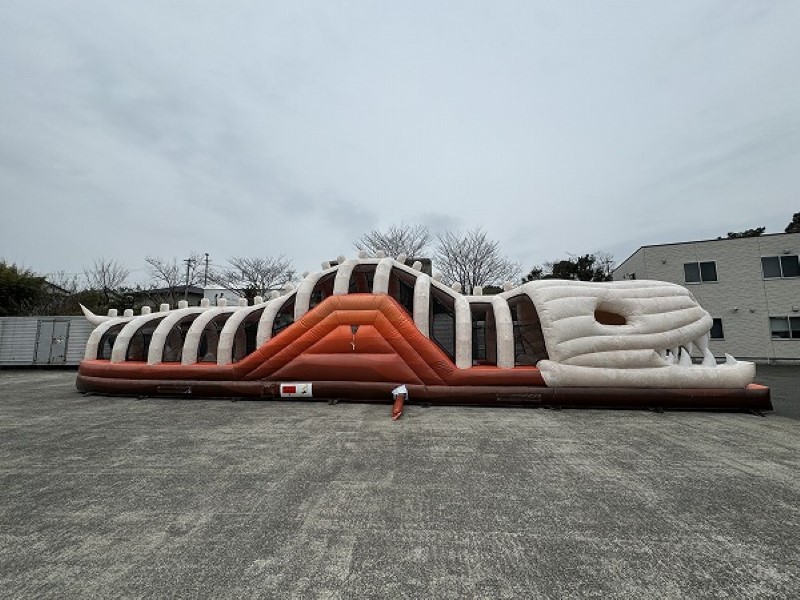 恐竜の骨格がそのまま巨大なふわふわ遊具になったスケルトンスライダー」は、イベント会場でも一際目立つインパクト抜群のアトラクションです! スケルトン状の骨の間をくぐったり、内部のスライダーで滑ったり、恐竜の卵を発見したりと、探検気分で楽しめる要素がたくさん詰まっています。 骨の部分はメッシュ構造になっており、外から中の様子が見えるので、親御さんも安心。見た目のインパクトと安全性を兼ね備えた、大型イベントや恐竜フェスティバルにぴったりの遊具です。