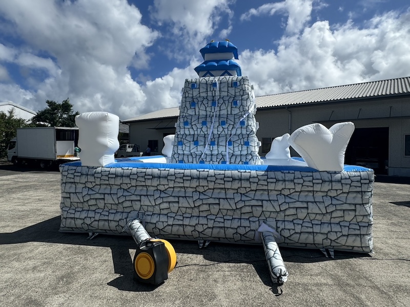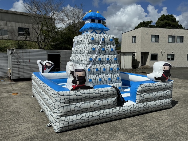 忍者ボルダリングは、人気のボルダリングに「忍者」と「お城」の世界観をプラスした、体験型のアトラクションです。 見た目はまるで本物のお城!外壁はリアルな石垣調のデザインで、まるで本当にお城を登っているような気分に。ルートの途中では、応援してくれる忍者の姿もあり、子どもたちのやる気を後押ししてくれます。 高さがある分、達成感は格別!「てっぺんまで登れたよ!」という自信が、子どもたちの心に残る思い出になります。 忍者好きなお子さまや、非日常の体験を楽しみたいファミリーにぴったりのアイテムです。