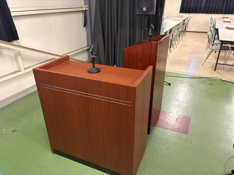 飛鳥寺のイベントにて演台を使用し、この演台を使用して講演をされました。基本的には室内使用の演台ですが、晴れの日限定ではありますが、晴れているのなら状況次第では外でも使用することは可能です。屋外での使用をしたいと検討されている方は気軽にご相談ください!また用途に合わせて他備品等もご用意でき案すのでこちらも気軽にご相談ください。