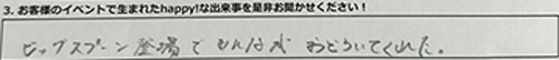 - お客様のイベントで生まれたhappy!な出来事を是非お聞かせください!