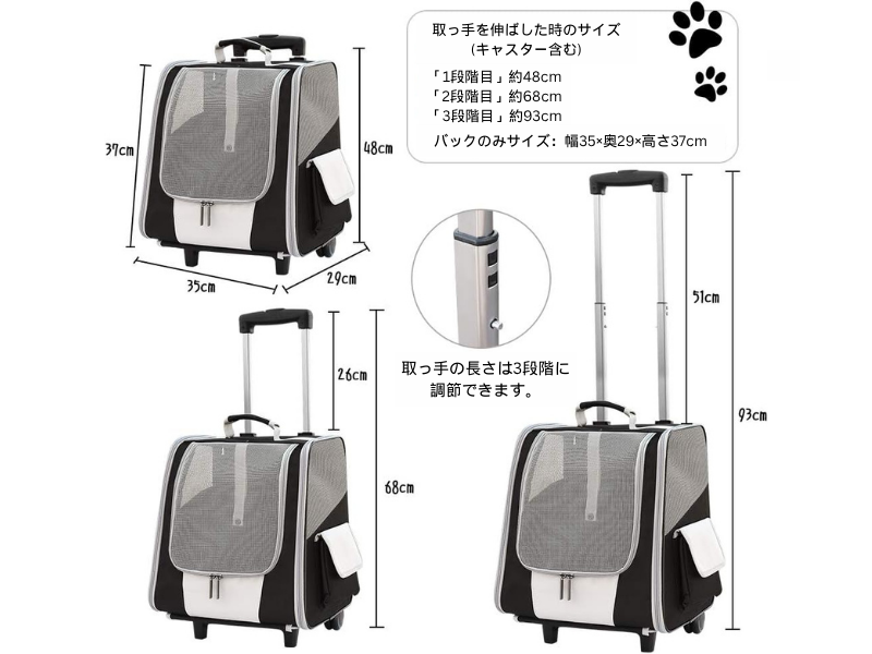 イベントに、愛するペットをつれていきたい! ワンちゃんやネコちゃんを、家に置いていくのではなく、家族として共に大切な時間を過ごしたい! そんな方に役立つ、ペット移動用バッグがこちらです!窓部分はメッシュ生地で風通しがよく、呼吸がしやすい構造となっております。 キャリーカートになりますし、腕が疲れてきたら、背負う事もできます。他にもたくさんの荷物があるのがイベントの現場というもの!安心、安全にペットを会場まで連れていきましょう!
