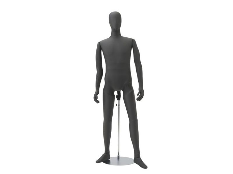 力強くバランスの取れたシルエットを持つ男性マネキンです。標準的な体型を再現しているため、多くの衣装を自然に着こなせるのが特徴です。展示会やイベントでは、スーツやカジュアルウェアを着せることでリアルな雰囲気を演出でき、店舗ディスプレイでも商品の魅力を引き立てます。軽量設計なので持ち運びや設置がスムーズにでき、限られた時間の中で準備が必要な現場にも最適です。落ち着いたカーボングレーのカラーは、衣装の色合いを邪魔せず調和し、全体をスタイリッシュに見せてくれます。