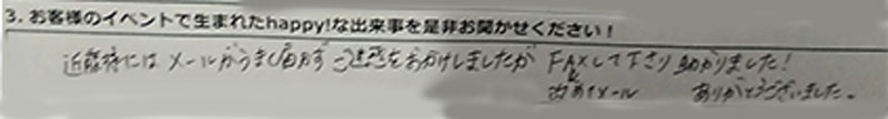 近藤様にはメールがうまく届かず ご迷惑をおかけしましたが 改めてメール&FAXして下さり助かりました!ありがとうございました!