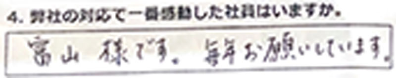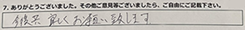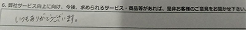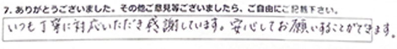 いつも丁寧に対応いただき感謝しています。安心してお願いすることができます。