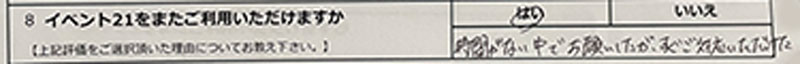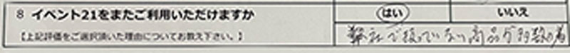 こちらは、イベント21がお客様からいただいたアンケートを紹介するためのXアカウントです。