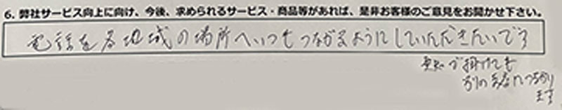 電話を各地域の場所へいつもつながるようにしていただきたいです 愛知で掛けても別の支店につながります
