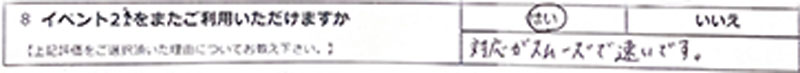 無事イベントが成功することが出でき、嬉しく思います!また機会がございましたら何卒宜しくお願い致します!