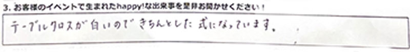 テーブルクロスが白いので きちんとした式になっていまいす。