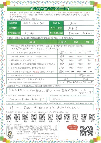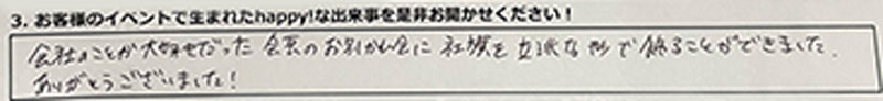 この度はお問あわせありがとうございます!無事にイベントが成功したり、喜んでいただいたエピソードを伺えて大変うれしく思います!