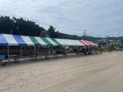 ビアガーデンのテーブルや椅子などの設置を行いました!