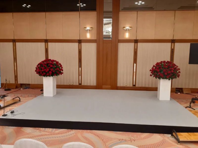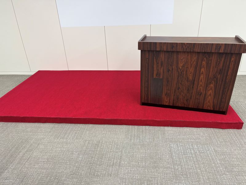 ホテル内で、記者会見でステージにパンチカーペットを設置させていただきました。