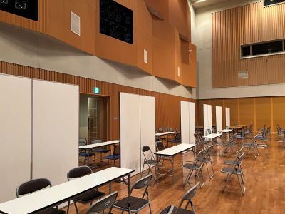 イベントとは少しちがうかもですが、体育館内の養生作業シートの設置を行いました。