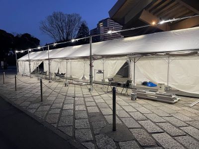 国立競技場にてサッカーの試合があるため物販用のテントをたててきました!