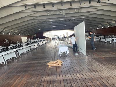 毎年みなとみらいで行っている、フラダンスのイベントの設営をしました!