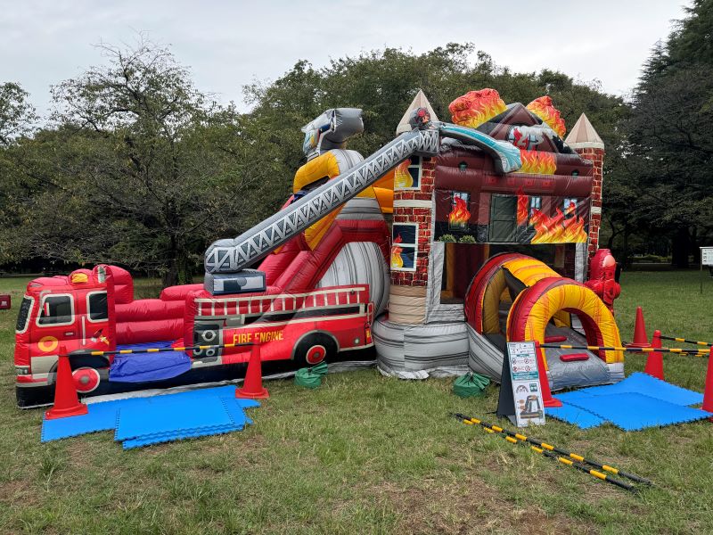 先日東京都練馬区に消防車スライダーの設営に行ってきました。