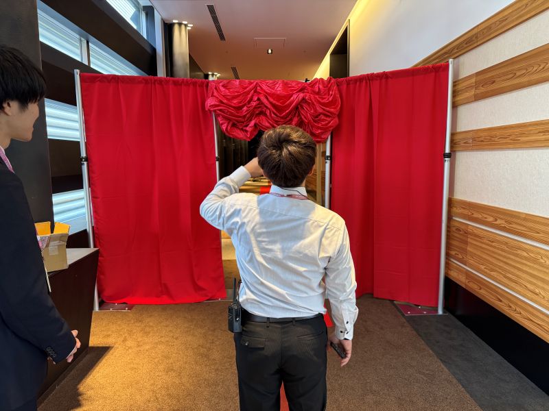 先日、弊社経営方針発表会で登場カーテンの施工をしてきました。 登場カーテンは、番組などで使ったりお客様を迎え入れたりと様々な場面でインパクトのある演出して使用ができます。 施工も間仕切りカーテンセットを使用すれば簡単に設置ができ演出の幅も広げることができます。 カーテンは防炎素材なので会場面での心配も解消できます。 是非ご利用ください!