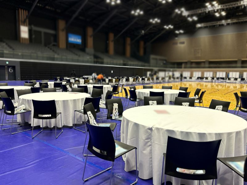 先日横浜武道館でとある連盟様の創立35周年祝賀会&パーティーにて、設営と撤去を行いました!商品は直径180cmの丸テーブルと、白いテーブルクロス、三つ折りパーテーションです!設営中に商品の設営場所を細かくすり合わせさせていただいたり、一緒に作り上げられることができ、無事にイベントを終えられることができました! 祝賀会&パーティーという素敵なイベントに携われて大変うれしく思います!引きつづき頑張っていきます!