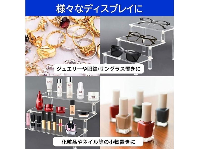 展示会│物販|ポップアップ|アクセサリー展│フィギュア展示|その他卓上アクリルひな壇ディスプレイ台のあらゆる用途に!