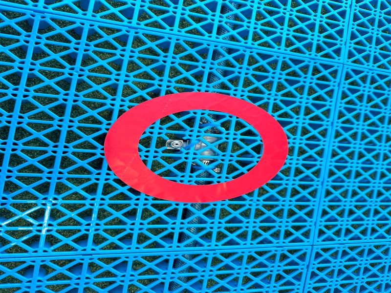 - 制御盤および電磁弁からスノコ本体にかけてホースが張ってありますので、来場者様が引っかかったり転倒したりしないよう、ご注意ください。