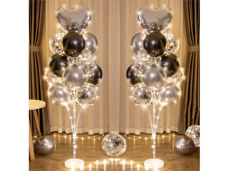 お誕生日パーティーに欠かせない風船と風船が簡単に可愛く華やかに飾れるバルーンスタンドをセットにいたしました。 バルーンスタンドは、おうちパーティを中心にお誕生日、出産祝い、100日祝い、ハーフバースデー、結婚式、記念日、ハロウィン、サプライズパーティーなど様々なシーンに繰り返し使えます。 こちらはなんとライトがセットになっており、ライトアップされたような装飾をすることも可能です。