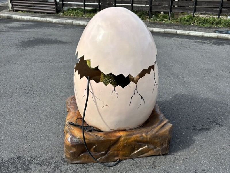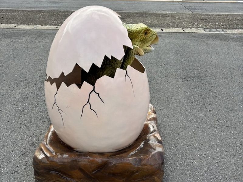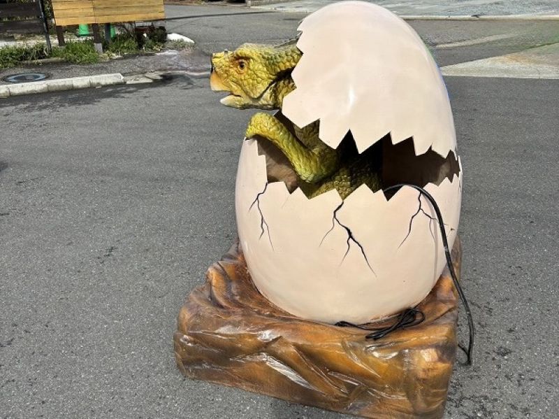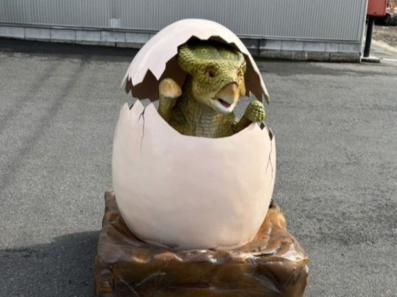 卵の中からひょっこり顔を出す恐竜の赤ちゃん──その愛らしい仕草と、思わず触りたくなるようなリアルな造形は、子どもたちだけでなく大人の心もつかみます。 モーターで首を左右に動かす演出により、「今にも動き出しそう!」と感じさせるほどの臨場感があり、見る人の目を引くアイキャッチとして大変優秀です。 高さ1.3mという程よいサイズ感は、小さなお子様が卵の中の恐竜と目線を合わせやすく、写真撮影時のポージングも自然に決まります。 親子で並んで記念撮影をする姿も多く、ファミリー層をターゲットにしたイベントにはぴったりの演出アイテムです。