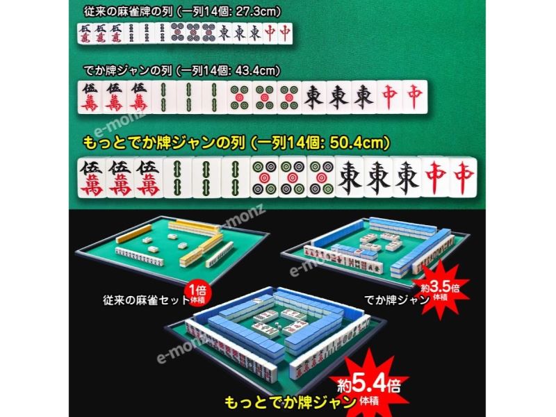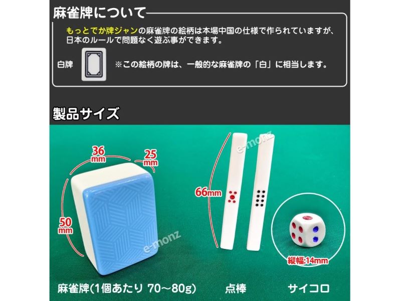 | サイズ | 牌1個あたり 幅(W)36mm×奥(D)×高さ(H)50mm |