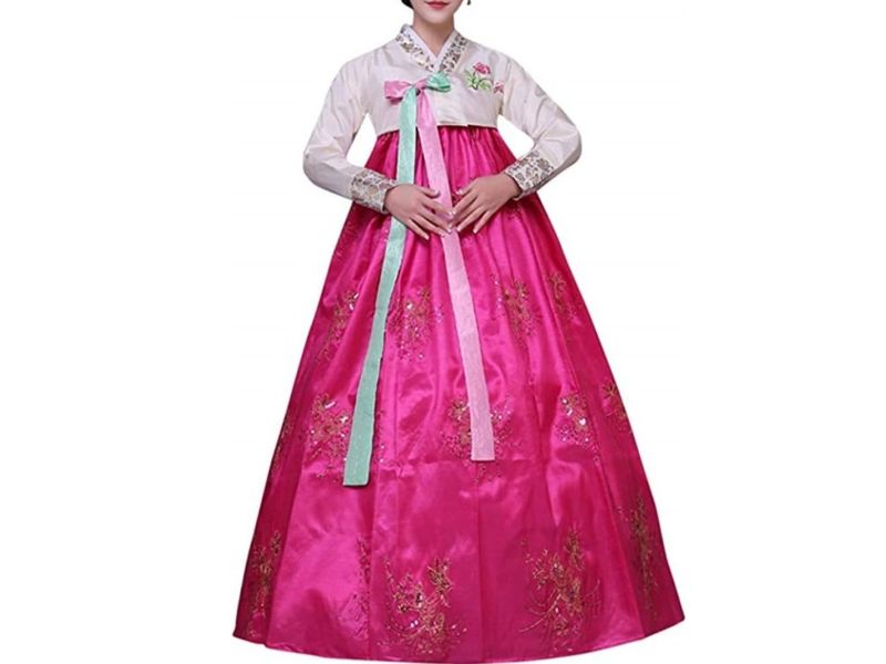 華やかなピンクが目を引く、韓国の伝統衣装「チマチョゴリ」です。カラー展開ではピンクとブルーの二色で、上品な刺繍が施されており、イベントやステージ、国際交流行事などにぴったり。 リボンや袖口の繊細な装飾もポイントで、写真映えも抜群です。一般的な巻きスカートではなく、そのままかぶって着れるスカートです。韓国の文化を体験する場面で、特別な1着としてぜひご利用ください。