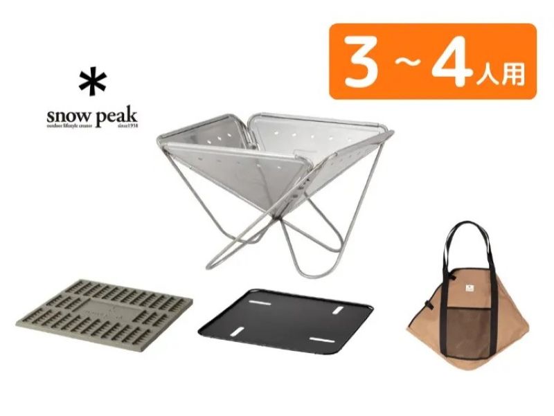 | 特長 | 焚き火とBBQの両方に対応した大型サイズのセットです。焼き網付きのため、食材を焼きながらアウトドア時間を楽しめます。 |