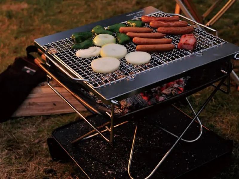 - 焚き火台として火を囲んで楽しむだけでなく、焼き網を使ってBBQ調理もできるため、アウトドアの楽しみ方を広げやすいセットです。