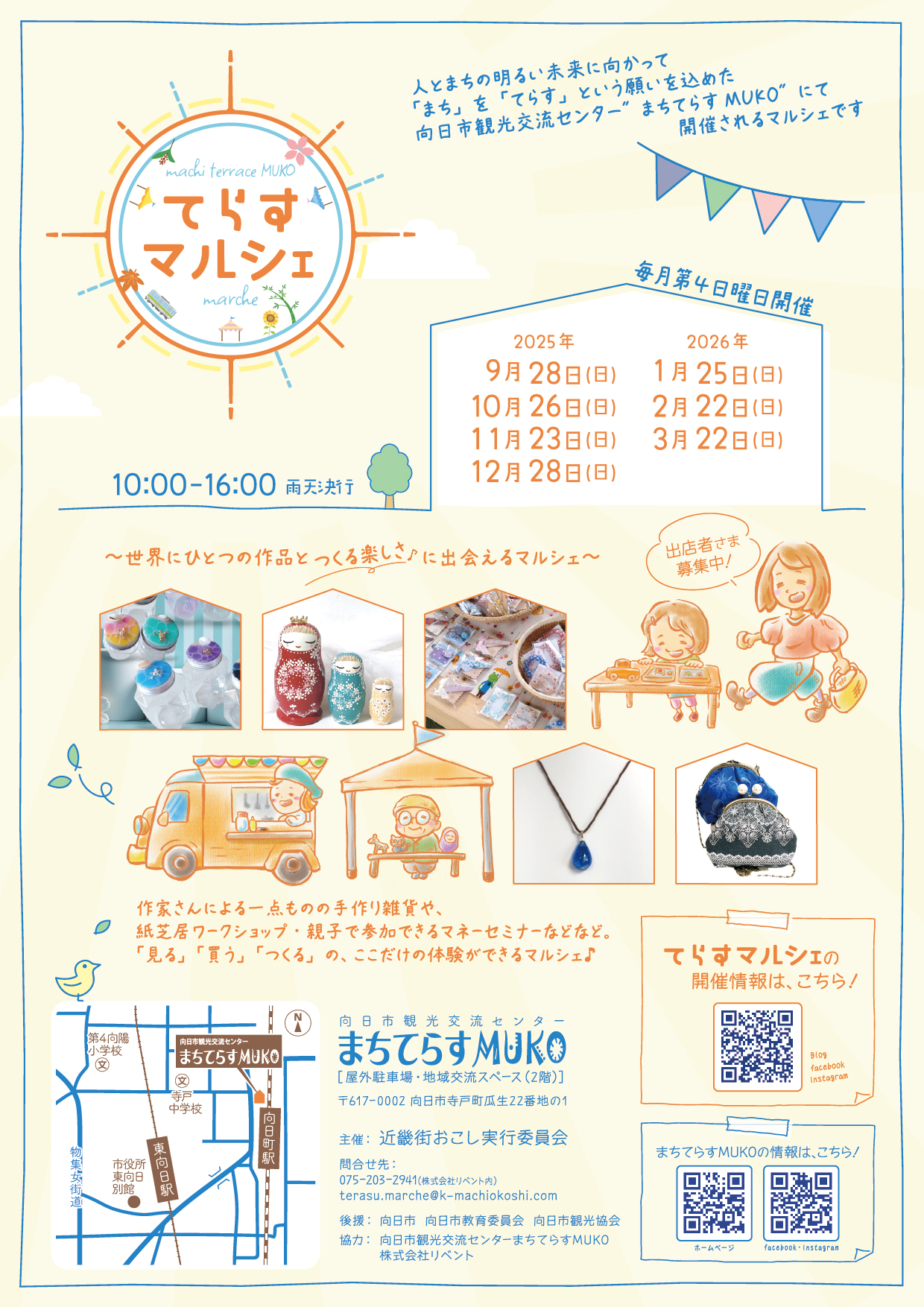 京都府向日市寺戸町瓜生22-1 2025/09/28~2025/09/28 まちてらすMUKOで開催する「人」と「街」をやさしく照らすマルシェ。