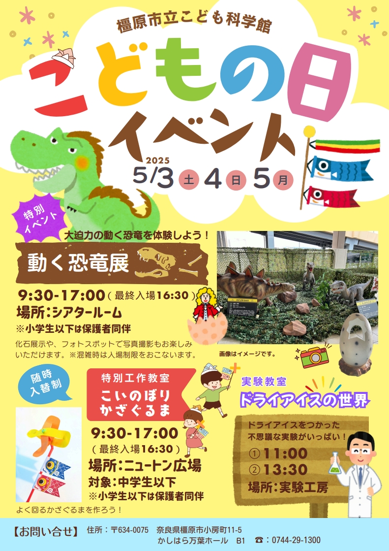 奈良県橿原市小房町11-5 かしはら万葉ホール地下1階 2025/05/03~2025/05/05 こどもの日だけの特別イベント開催!