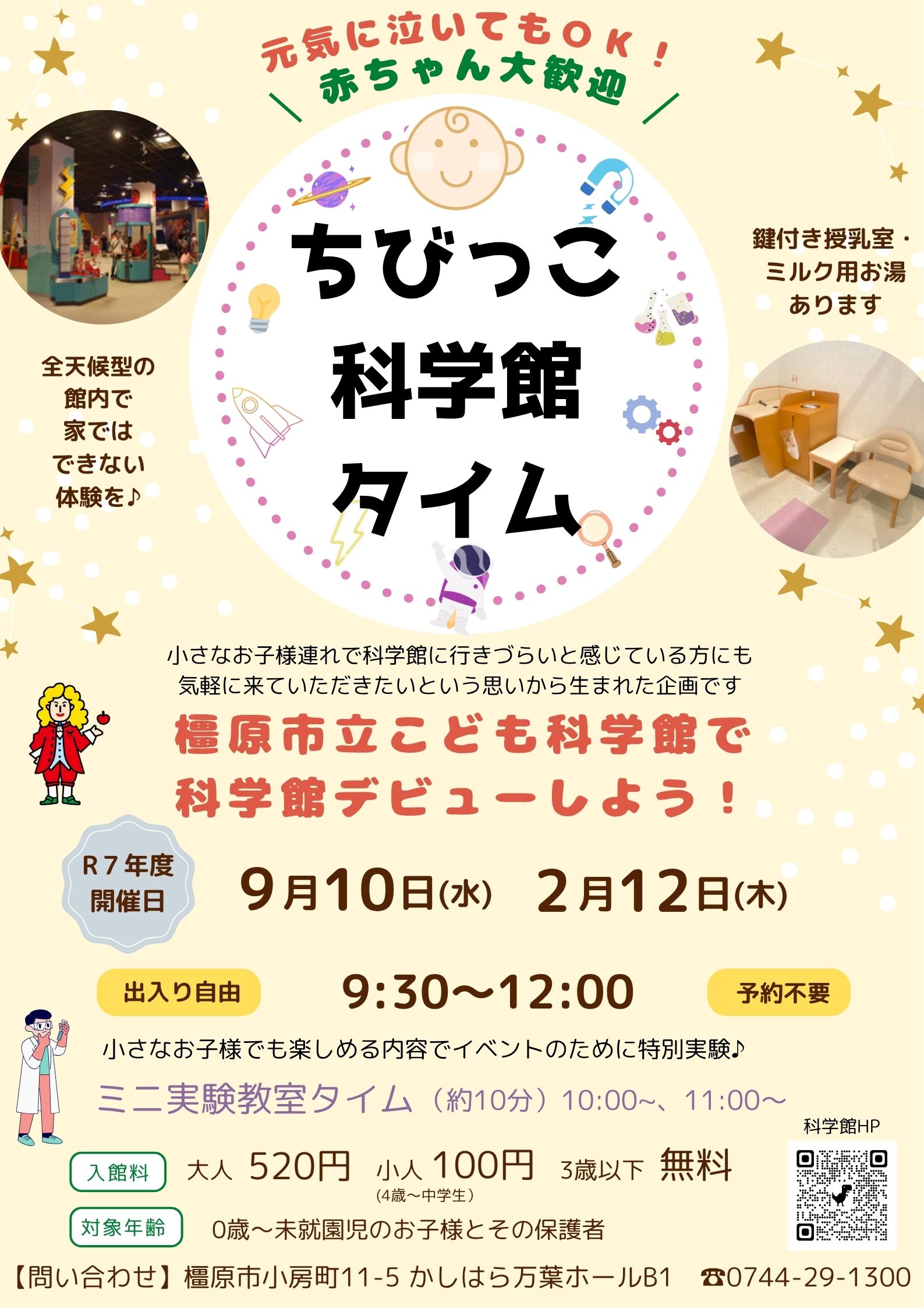奈良県橿原市小房町11-5 かしはら万葉ホール地下1階 2026/02/12~2026/02/12 赤ちゃん歓迎!科学館デビューをしよう!